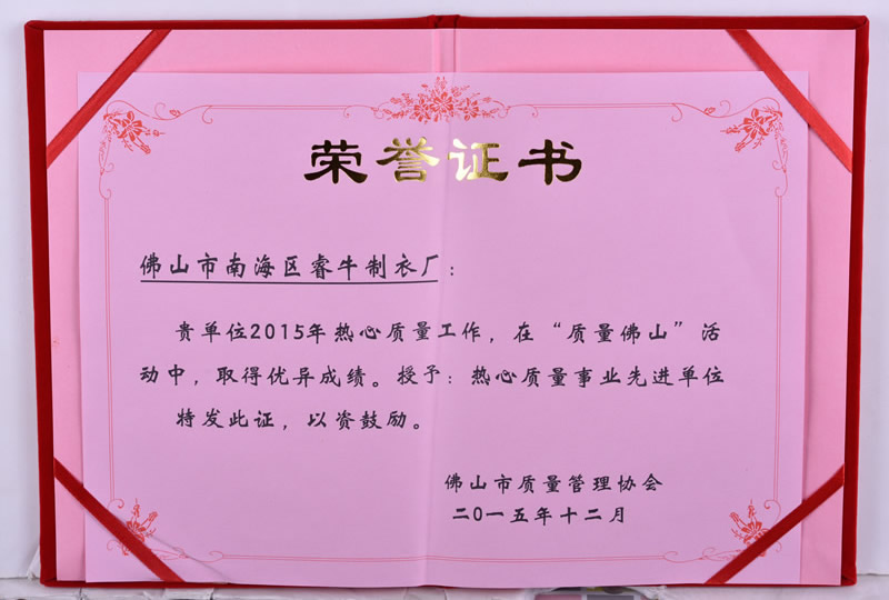 熱心質(zhì)量事業(yè)先進單位 -
