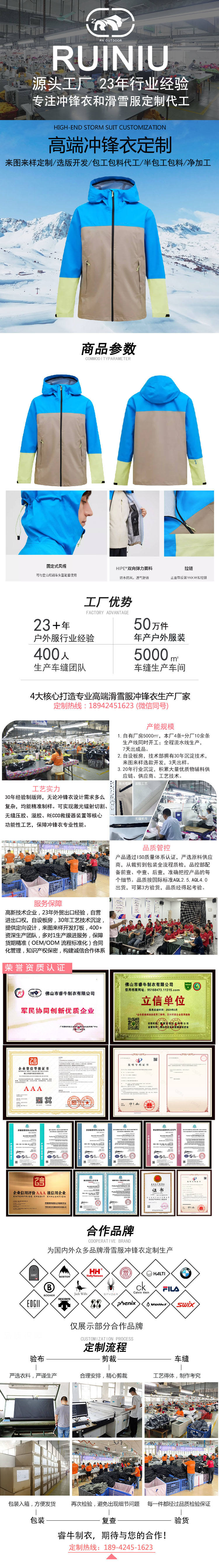優(yōu)質(zhì)面料:專業(yè)高端沖鋒衣定制23年沉淀優(yōu)質(zhì)供應商資源,可根據(jù)客戶需求精選優(yōu)質(zhì)面料。